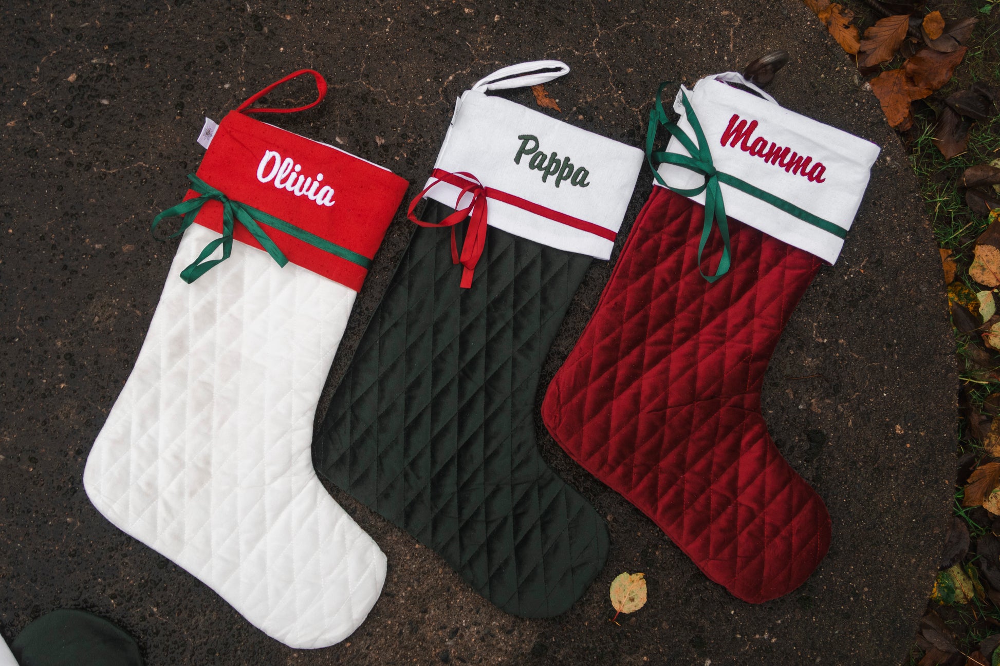 Gjør julefeiringen ekstra personlig med en quiltet julestrømpe – brodert med navn!