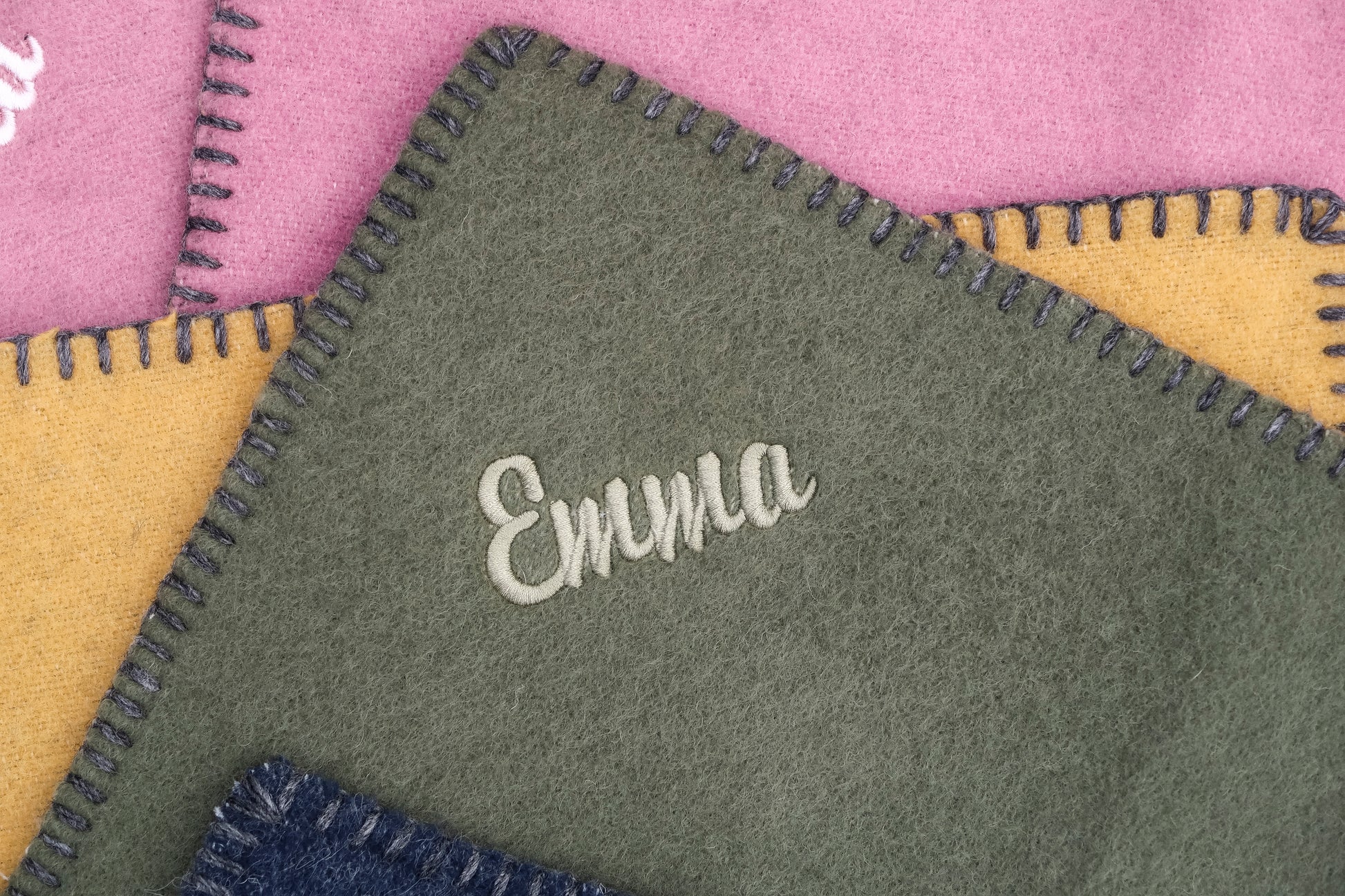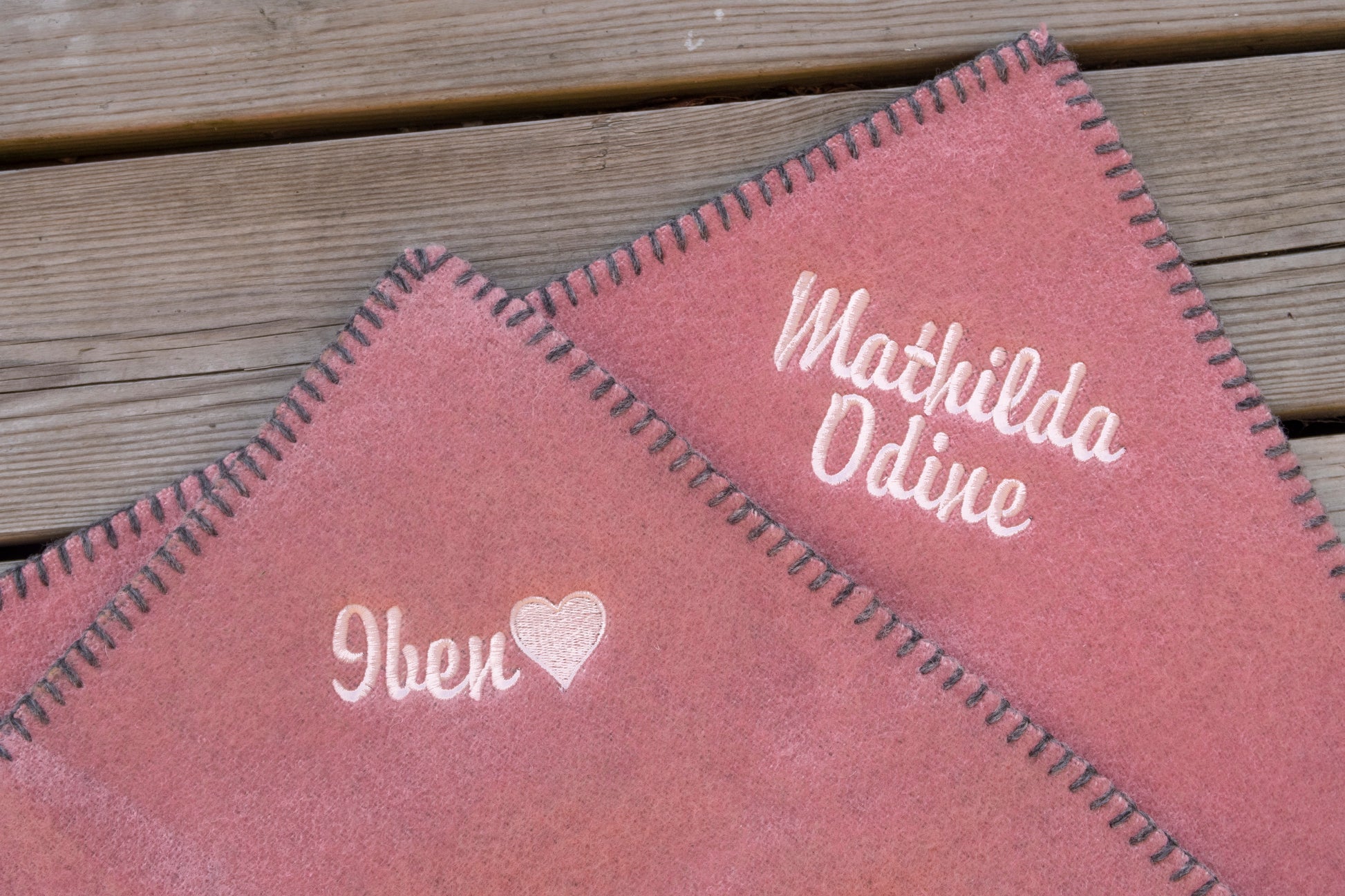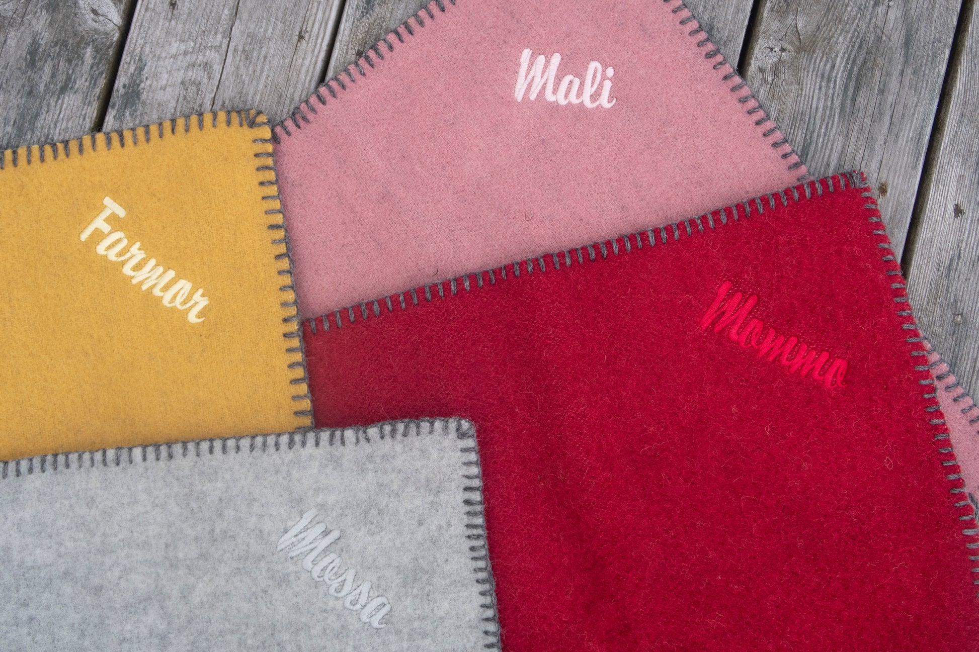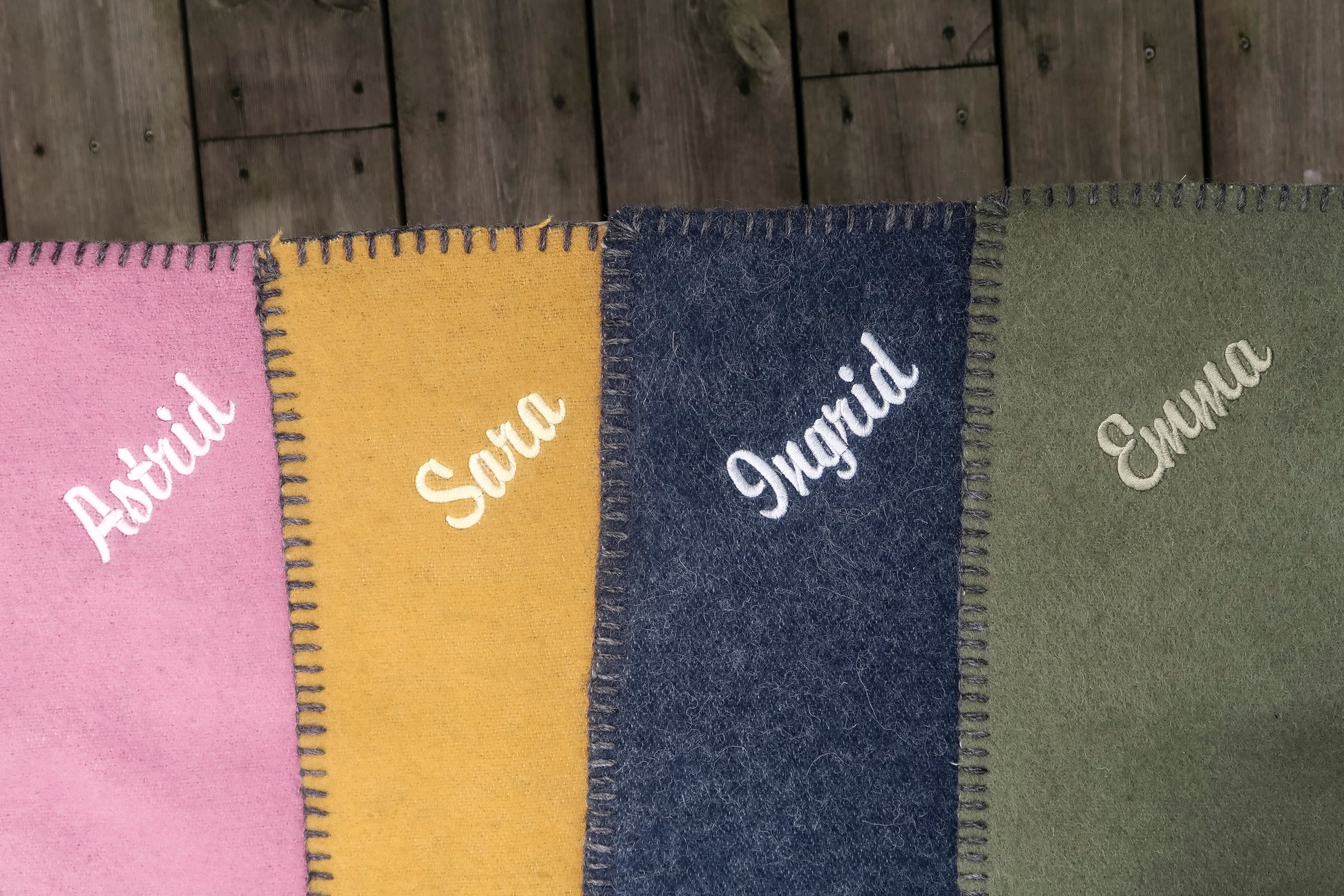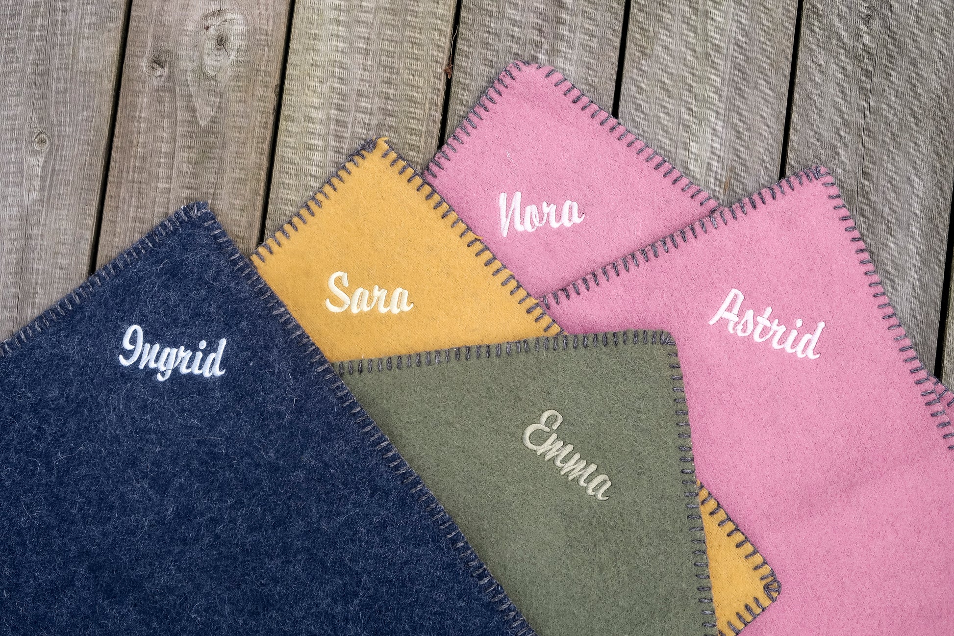 Vi er stolte over å kunne tilby navne- og tekstbrodering på sitteunderlag fra Spinnerigården i Grimstad.