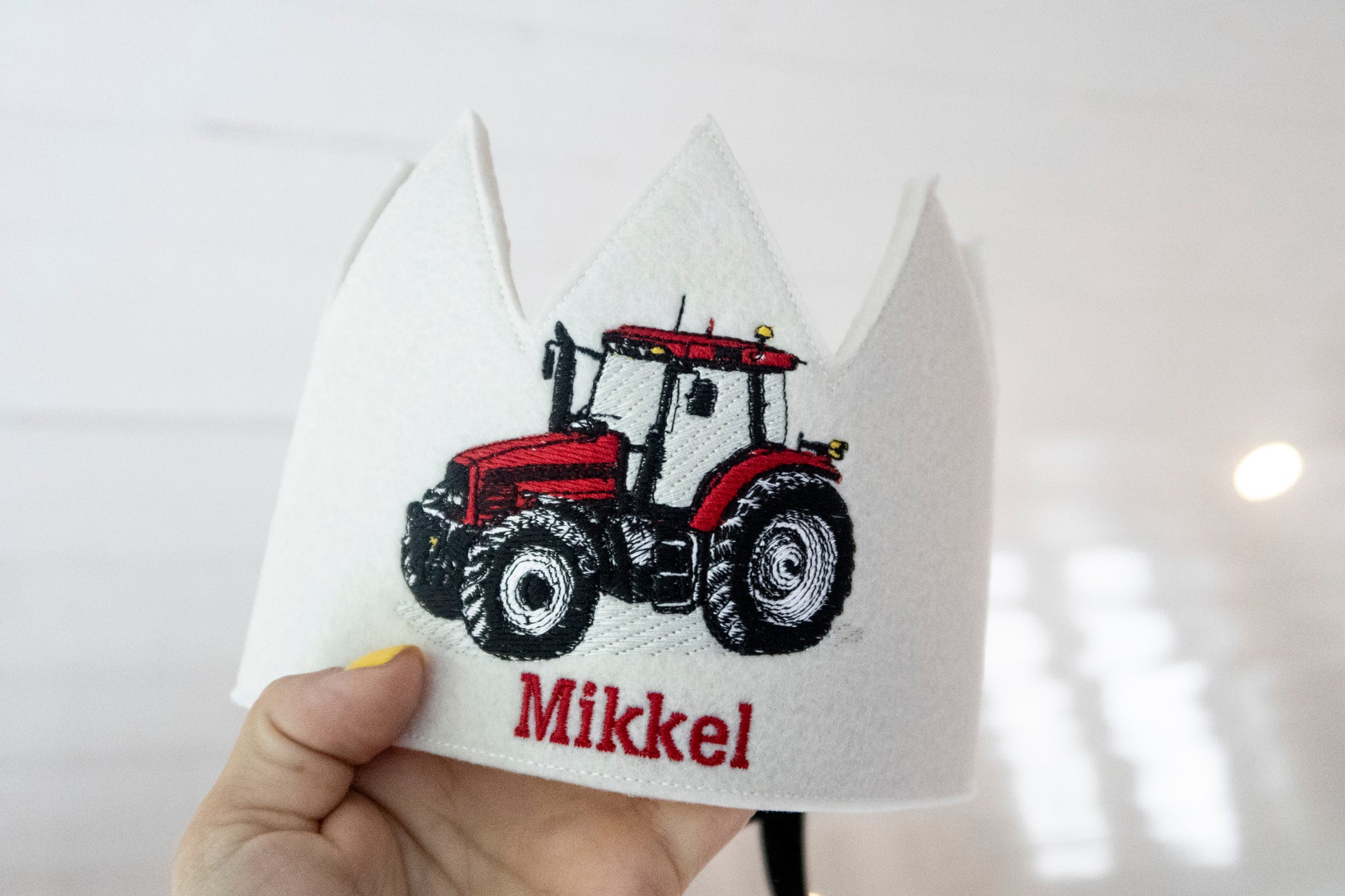 Er barnet ditt fascinert av traktorer og store maskiner? Da er vår broderte krone med traktormotiv den perfekte gaven! Denne tøffe kronen er laget for de som elsker store hjul og kraftige motorer, og er et perfekt tilbehør til bursdager, utkledning eller bare for å sette fart på fantasien.Denne kule kronen kan følge barnet gjennom mange år.